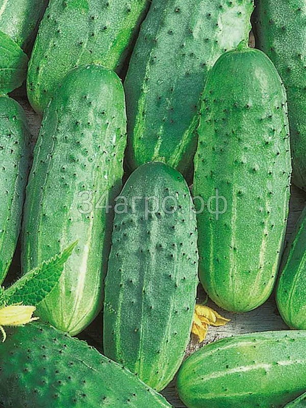 Раннеспелый пчелоопыляемый гибрид для выращивания в открытом грунте. Растение индетерминантного типа, среднеплетистое. Зеленцы удлиненно-яйцевидные, с крупными бугорками и черным опушением, зеленые со светлыми размытыми полосами. Средняя масса плода 100 г, длина – 10-11 см, диаметр – 4 см. Мякоть плотная. Вкусовые качества свежих, соленых и консервированных плодов отличные. Сорт отличается продолжительным периодом плодоношения, стабильной урожайностью. Устойчив к бактериозу и ложной мучнистой росе. Не забывайте собирать зеленцы ежедневно!